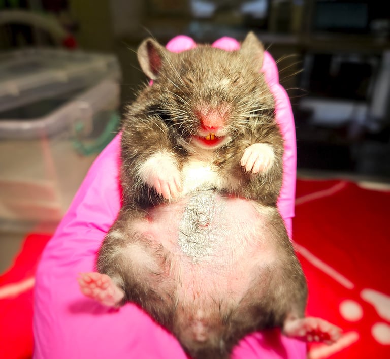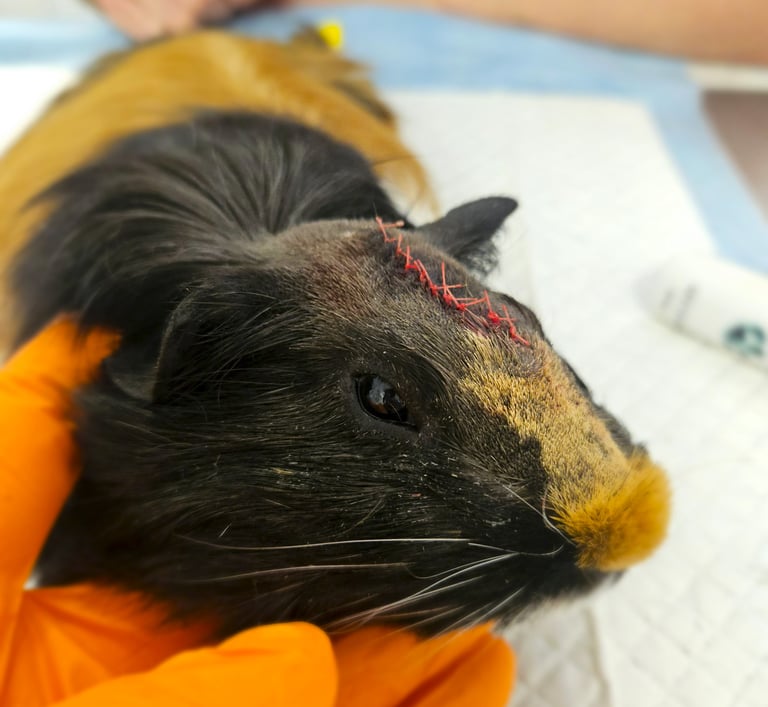 chirurgiczne leczenie pododermatitis świnek morskich (amputacja uszkodzonych paliczków i kości śródręcza)