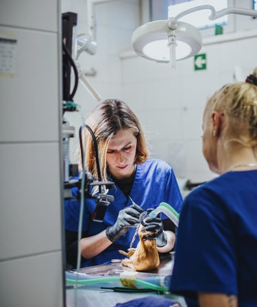 Od 2015 roku zajmuję się diagnostyką i leczeniem zwierząt egzotycznych. Dzięki zespołowi Przychodni Weterynaryjnej "Zwierzętarnia" w Łodzi od kilku lat mogę skupić się wyłącznie na chirurgii i stomatologii. Oferuję kompleksową diagnostykę stomatologiczną oraz diagnostykę struktur ucha i nosa (z pomocą RTG i tomografii stożkowej), ustalenie planu leczenia, szeroki wachlarz zabiegów chirurgicznych (ze szczególnym uwzględnieniem chirurgii twarzowo-czaszkowej królików i gryzoni) oraz długoterminowe prowadzenie pacjentów stomatologicznych.